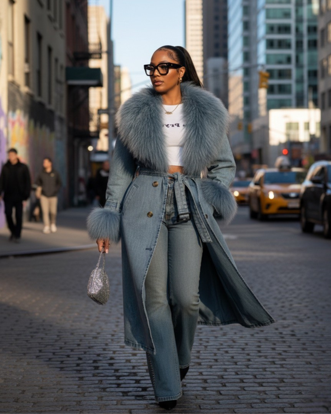 Featured Denim Luxe Trench ⋆ Real Mongolian Lamb Fur ⋆